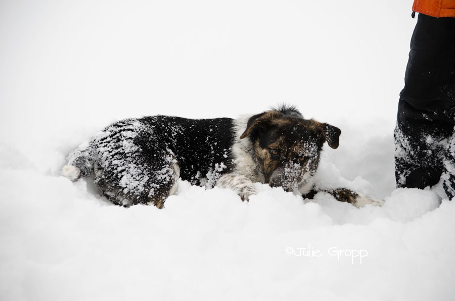 Trixie is still a puppy and has some learning to do, but she is such a sweet dog. We are glad to have her in our family. After they played and the boys came back in, she went into her igloo to get warm.